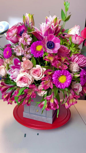 Surprise your loved one with fresh and extravagant flowers inside a gray velvet box! The most luxurious and generous display of your love and adoration, our 3D velvet Box features handpicked fresh seasonal flowers that are bound to impress and leave any recipient totally speechless! This arrangement helps to commemorate life’s most special moments and makes any holiday, birthday, or anniversary feel even more special with its tasteful display of premium flowers. If you’re looking to really “WOW” someone special, look no further than our impressive flowers velvet Box.