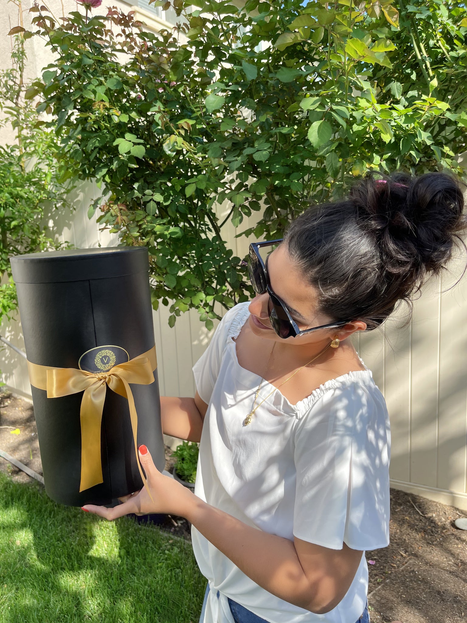 - Includes a Surprise Floral Gift Box, a black 3 tier premium quality round-shaped tower.